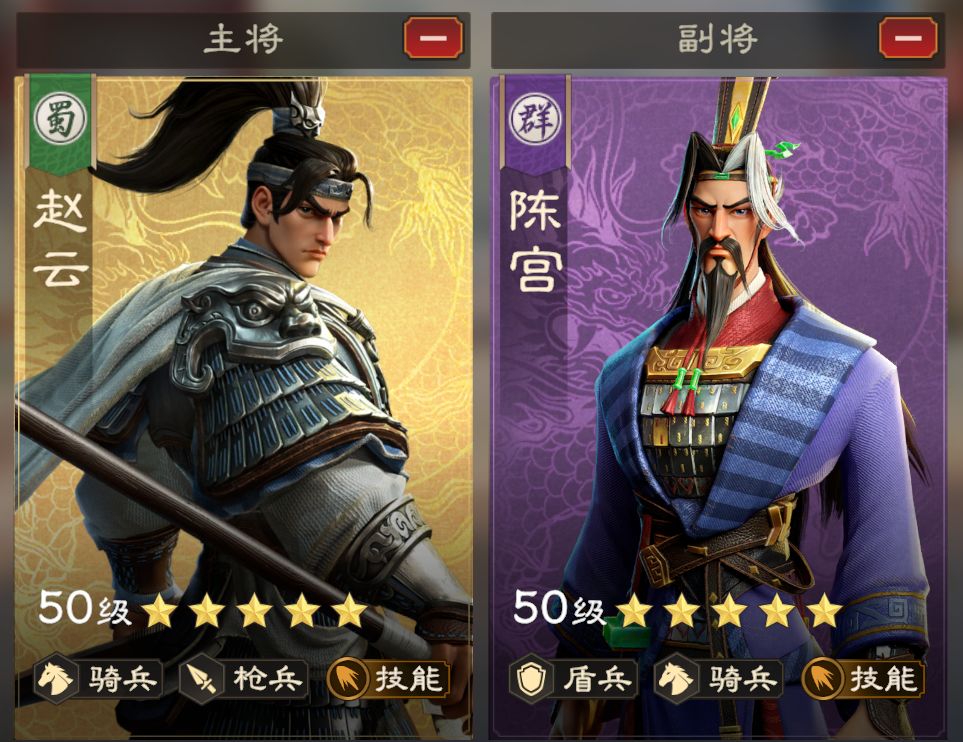 赵云可通过首充入手,我们可以轻松的与陈宫构建出一支技能阵容。赵云技能系数高,普攻时可提供回怒,能够加快队伍技能释放频率。这支队伍可用来开荒,后续如果抽到更好的技能流武将,再换掉陈宫。