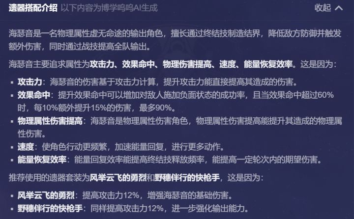 官方宣称:博学呜呜测试版是基于游戏内的数据,为开拓者推荐角色阵容、遗器等定制化方案,并能通过大预言模型只能少生成方案介绍的工具。
