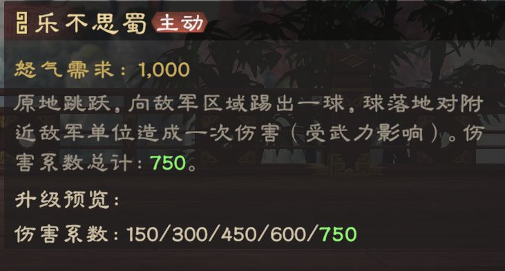 由于武力数值稍低,所以怒气技打不出太高伤害,主要是用来作为伤害补充。