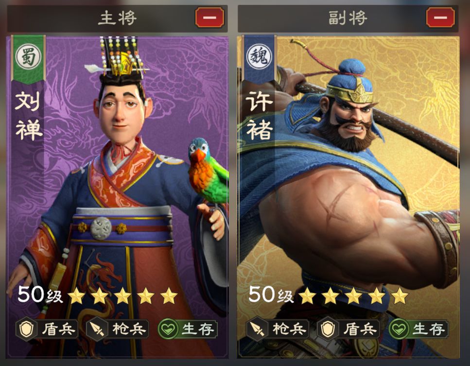 生存盾尽管缺少输出,但有较强的持续作战能力,在大规模作战中可承伤、维持战线推进。刘禅可作为过渡使用,后续如果有更强的生存武将,可以在替换。我们除了生存盾外,可以额外构建1-2支主力队打伤害,对于团战、单挑来说,都是要有足够的伤害才能歼灭敌方队伍。