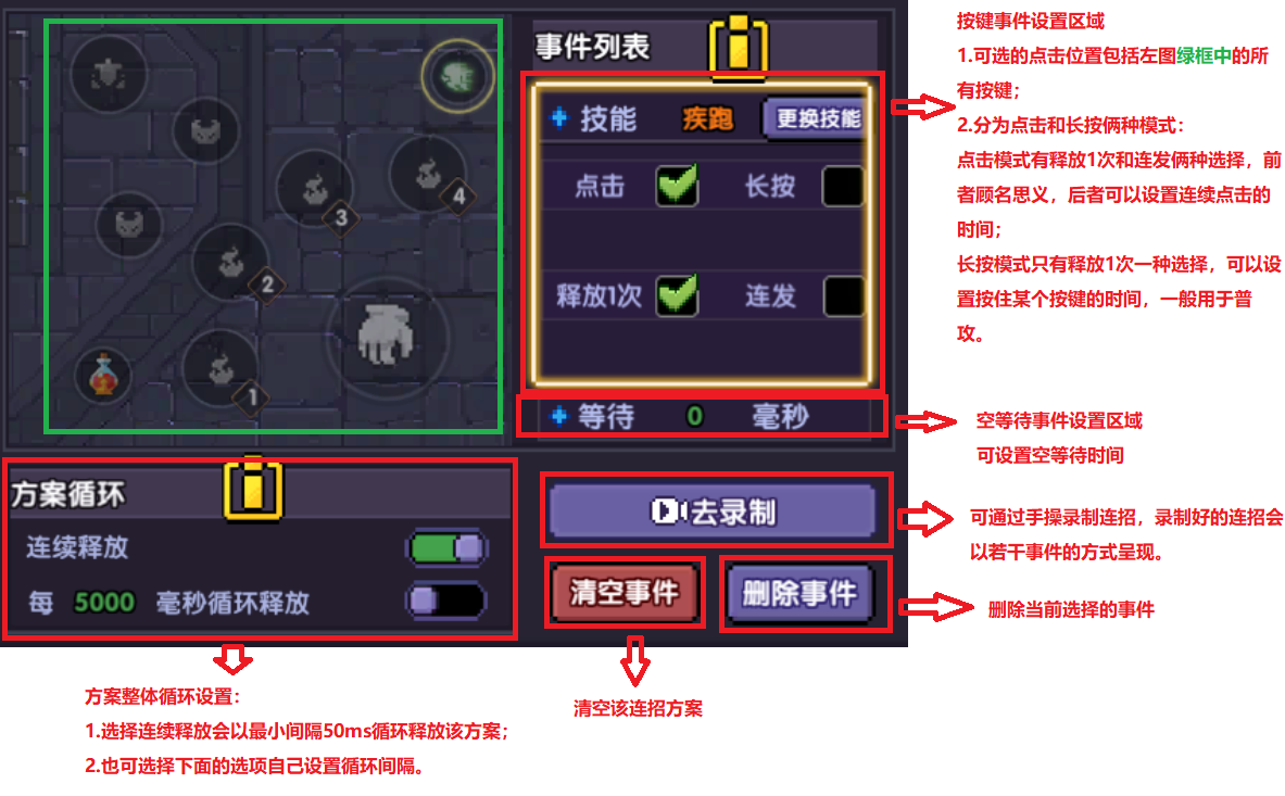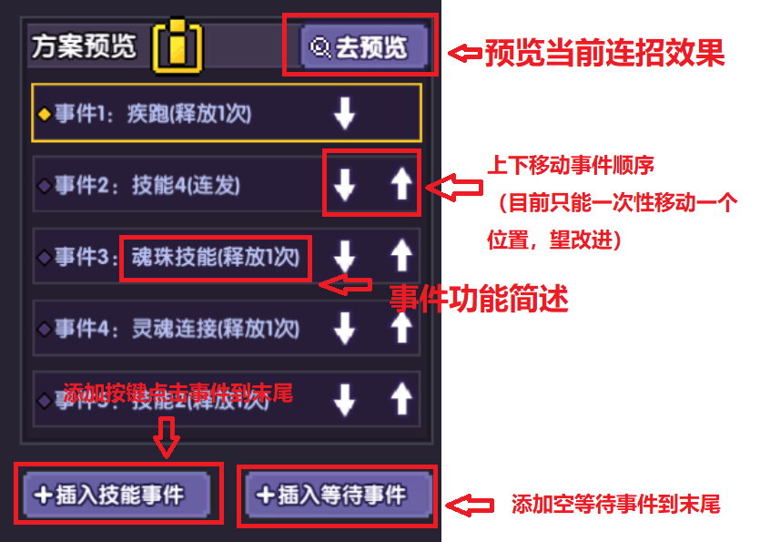 3.当前按键事件一个事件只能针对一个按键进行设置,希望能增加单个事件对多按键同时点击的功能(目前想实现只能通过多个事件,但事件上限又只有50,非常浪费);