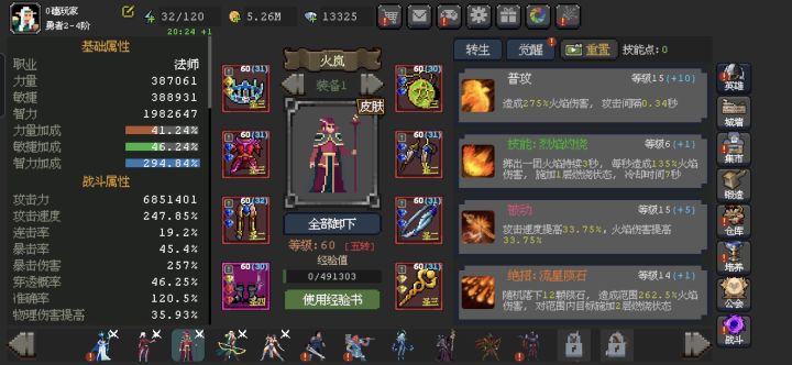阵容中下了骑士上了毒夫人(血刺更好),火法的三转技能改成对毒(流血)伤害增伤百分之20,四转技能用了普攻概率打5个