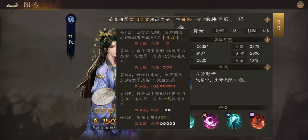 相比来说武将强度远不及貂蝉,还是推荐大家主养貂蝉,有能力就把甄氏先拉到10星就行。