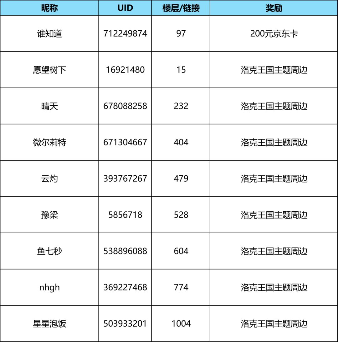 感谢小洛克们的积极参与,本次活动已经结束啦,后续我们还准备了其他活动,小洛克们可以积极参与,下面就一起来看看哪些小洛克获得了活动奖励吧~