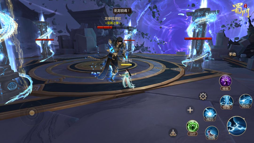在挑战的过程中,钱肃钦将会召唤青龙幻化出石柱,聚集所有的力量结成幻阵,要将蜀仙盟弟子围困于此!青龙石柱牢固无比,并不能轻易被击破。需要各位蜀友们耐心引导钱肃钦的技能方向,利用他自身的力量来击破石柱,方可化险为夷。