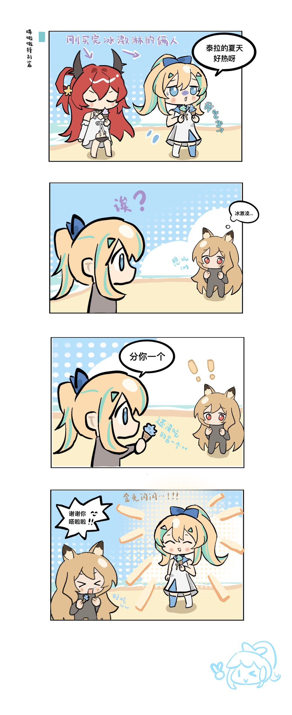 仿照官方画风画了一集123罗德岛之夏日特别篇~嗒啦啦友情出演嗒啦啦给小刻吃冰淇淋,嗒啦啦好!喜欢的朋友们点点赞呀#夏日回响 #嗒噗同人 #嗒啦啦 #明日方舟 #刻俄柏 #史尔特尔 #嗒啦啦的家...