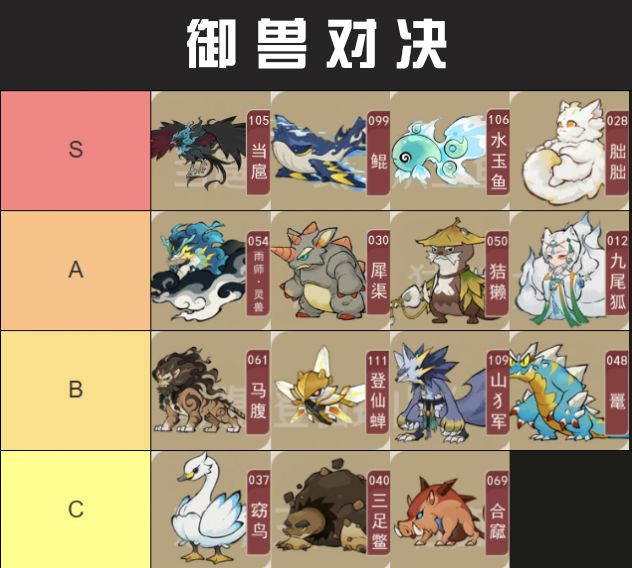 根据前两次的强度榜反馈,本着更加严谨的态度。我们对t表细分为了3个板块,御兽对决、公平竞技(单打)、公平竞技(双打)。