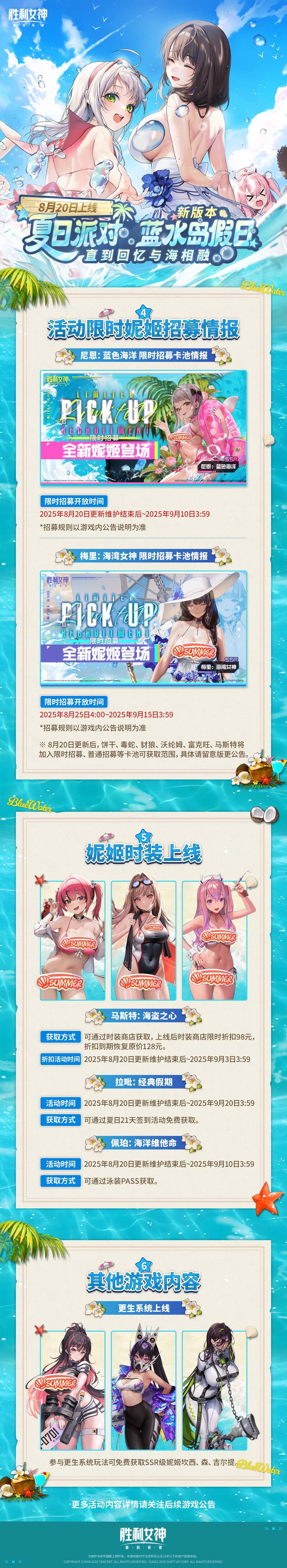 《胜利女神:新的希望》将于8月20日开启全新游戏版本「BLUE WATER ISLAND 蓝水岛假日」🌊