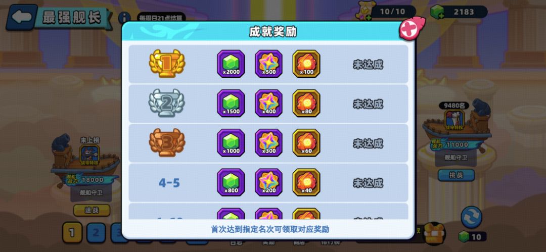 ● 【成就奖励】根据队长历史最高的排名名次,领取对应的成就奖励,成就奖励不会重置。