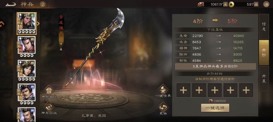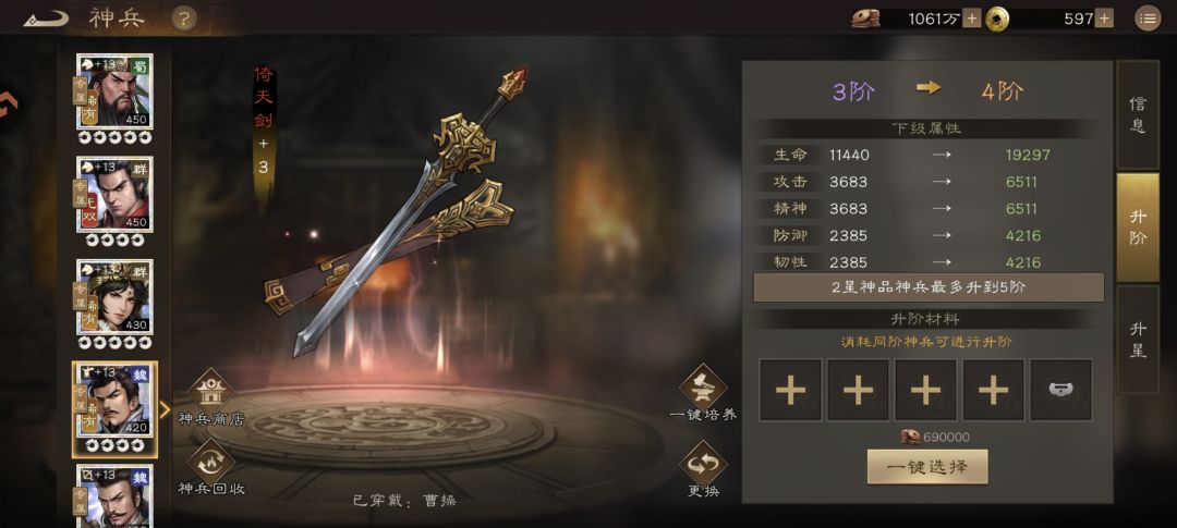 1. 主阵角色:优先拉到4阶(当前多数玩家主阵神兵已达此阶段);