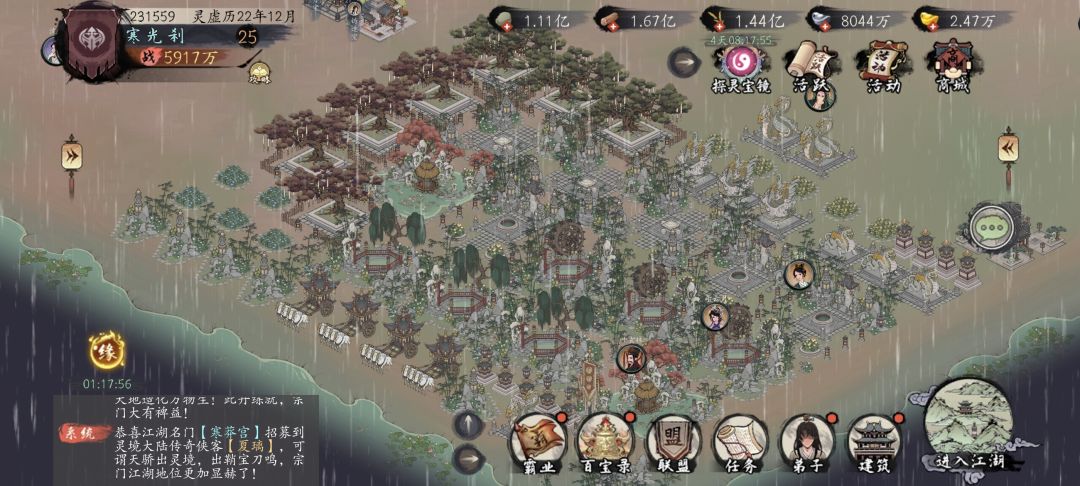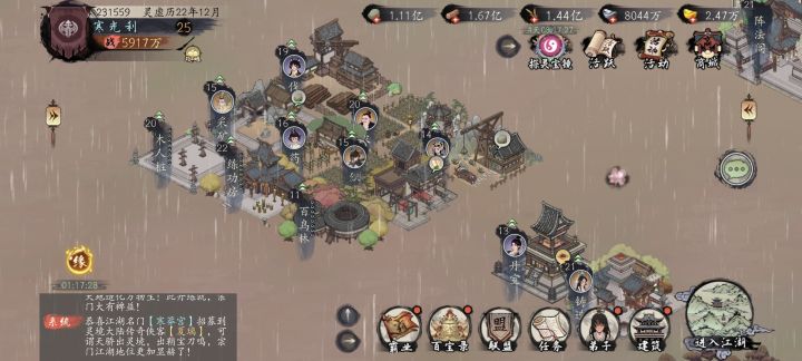 p2.3中间那团是有用的主建筑 下面是资源/材料/炼丹/炼器各1个 可以方便收菜