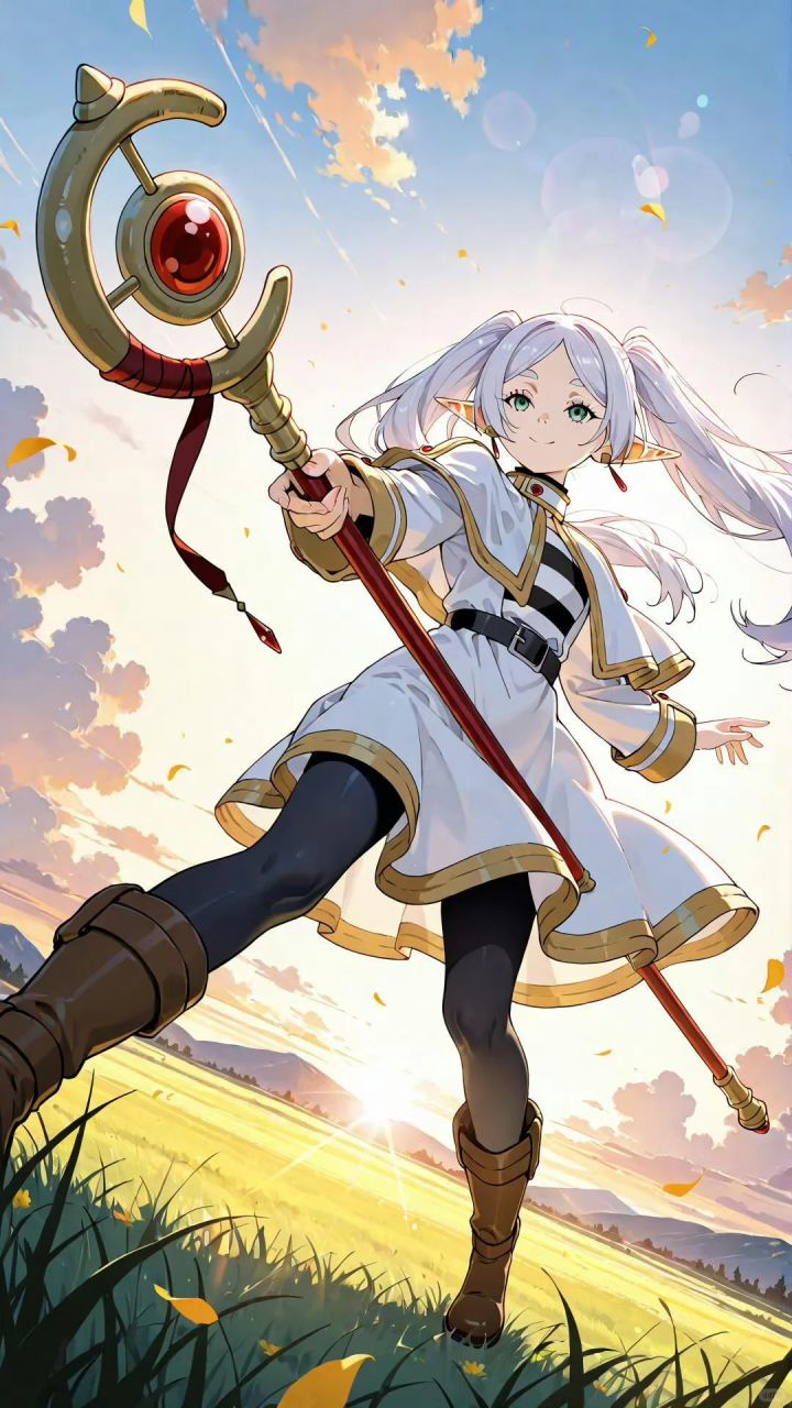 讨伐魔王胜利归来的勇者一行中的魔法使,爱好收集魔法,因替人类研究解析杀人魔法作出巨大贡献并葬送最多魔族性命,被魔族称为“葬送的芙莉莲”。是除师祖赛丽艾之外持有圣杖之证的最后的大魔法使,实力强劲,天资优异 。名字源于德语“Frieren”,意为“冰冻”。
