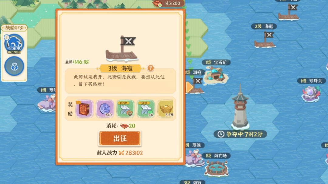第三步:前往寰海十洲采集资源、「古迹争夺」、「海港争夺」(寰海争涛)、击杀海寇;