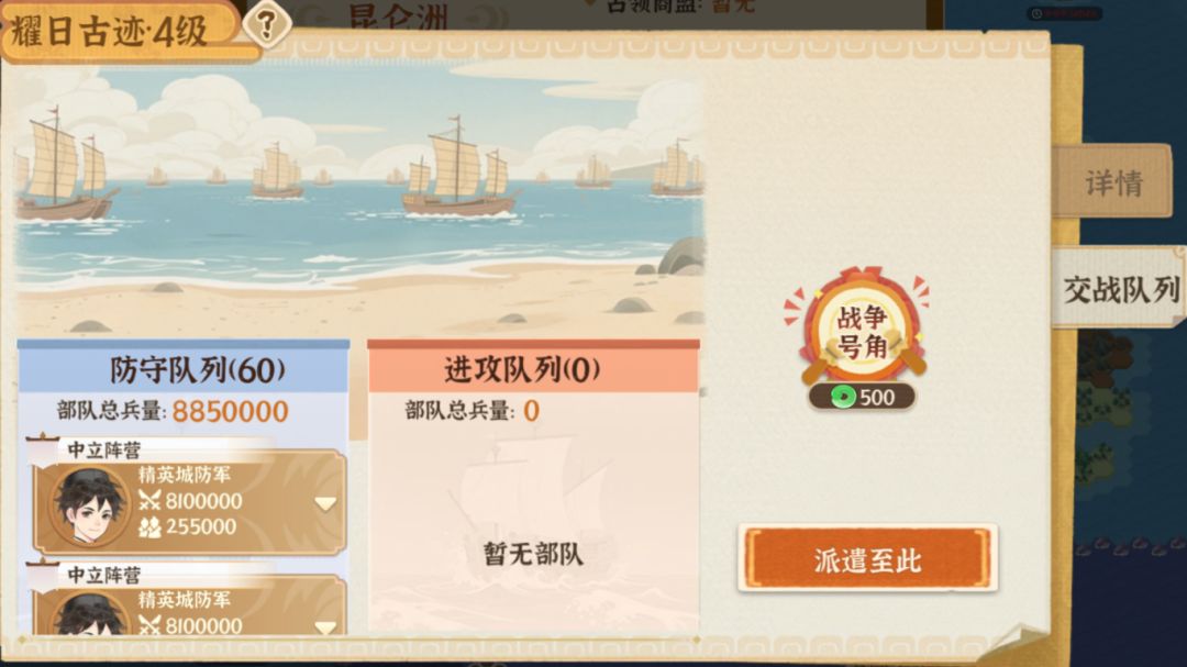 ①若暂无街主驻守部队,进攻方将与古迹城防守军进行战斗。