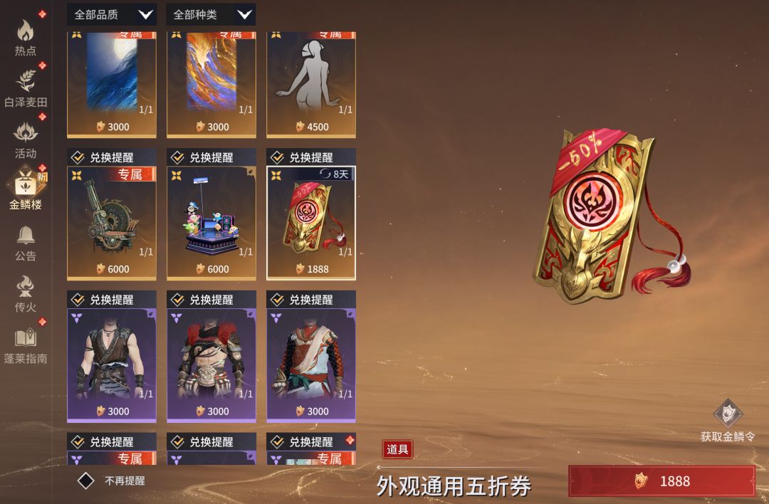 理财小助手温馨提示 五折券也是有时限的,并且不是所有时装与捆绑包都能使用五折券哦。