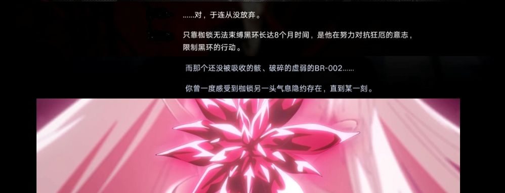 3、黑环存在半激活体和完全激活两种状态。半激活体是指骸为独立个体未完全侵蚀禁闭者时的黑环,完全激活是指受骸者为狂厄级禁闭者时的黑环。半激活体只有在侵蚀融合狂厄级禁闭者作为受骸者的意识锚点后才会完全激活。