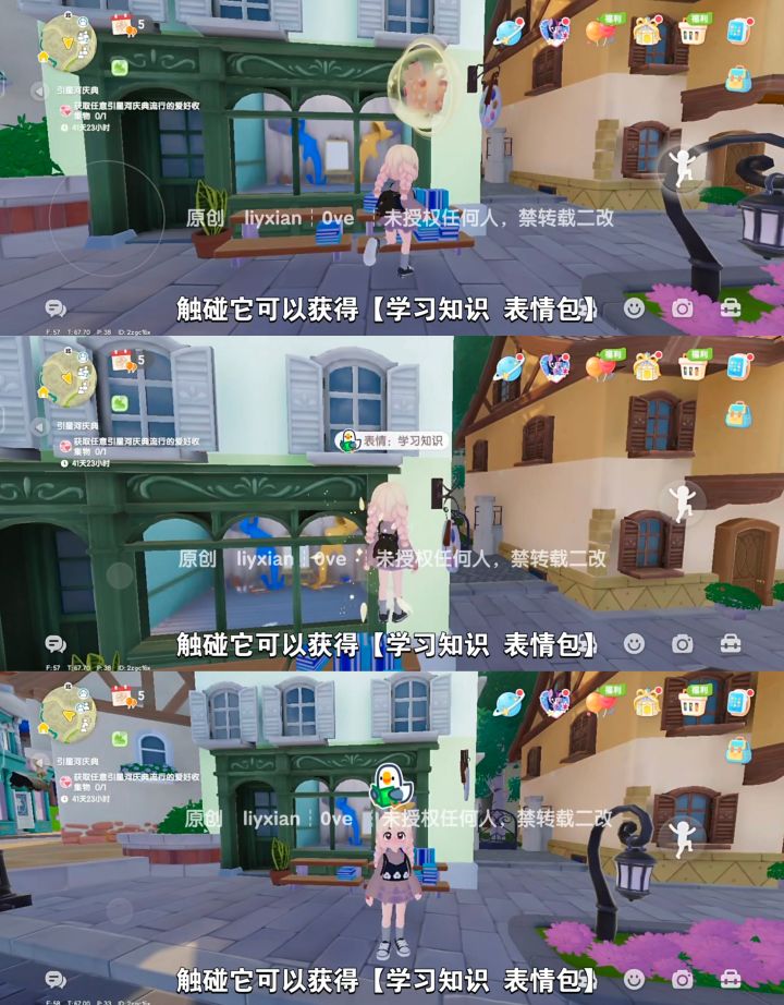 活动期间,根据页面提示的谜面信息,找到谜面提及的位置并找到星球泡泡,即可获得泡泡中的神秘表情礼物。