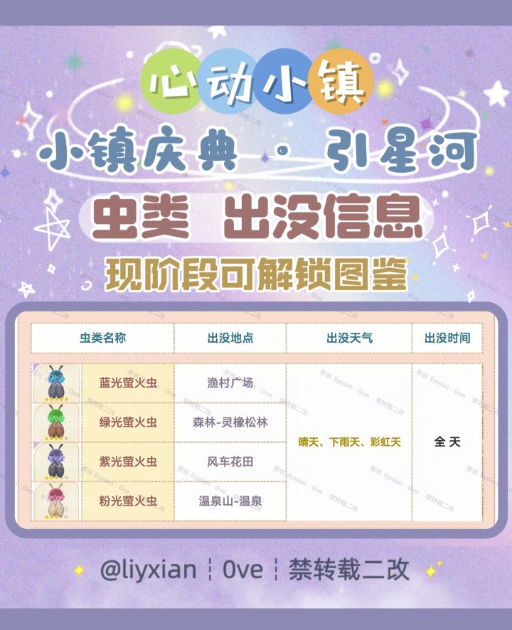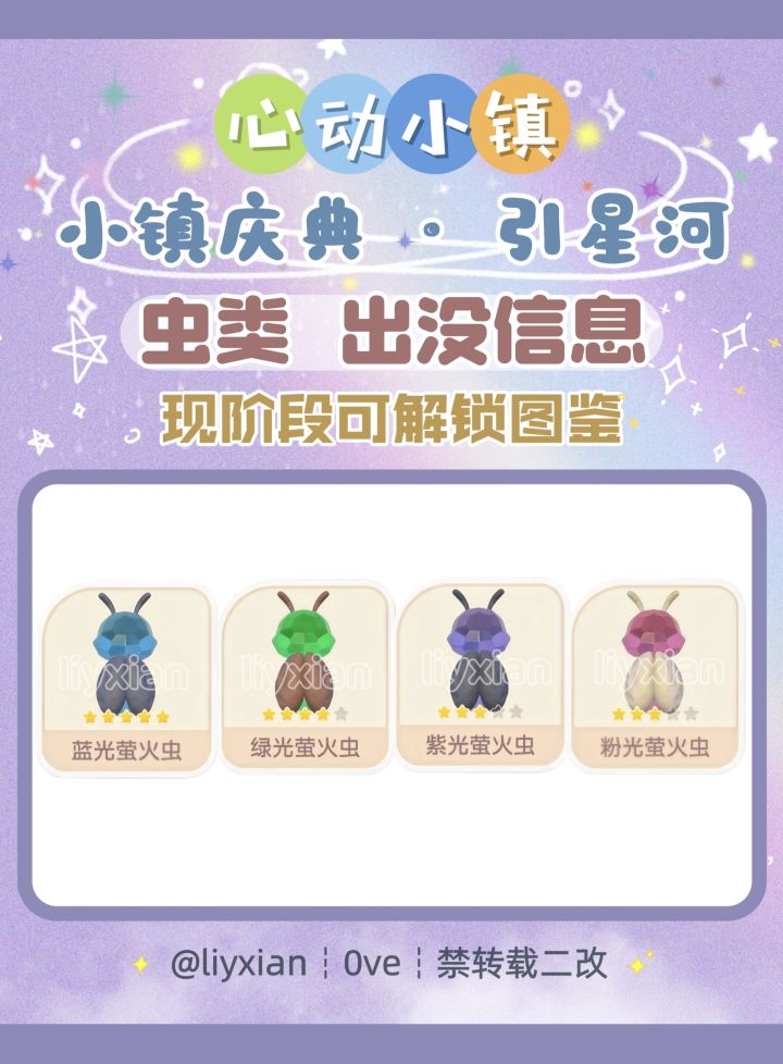 【蓝光萤火虫】、【绿光萤火虫】、【紫光萤火虫】以及【粉光萤火虫】。