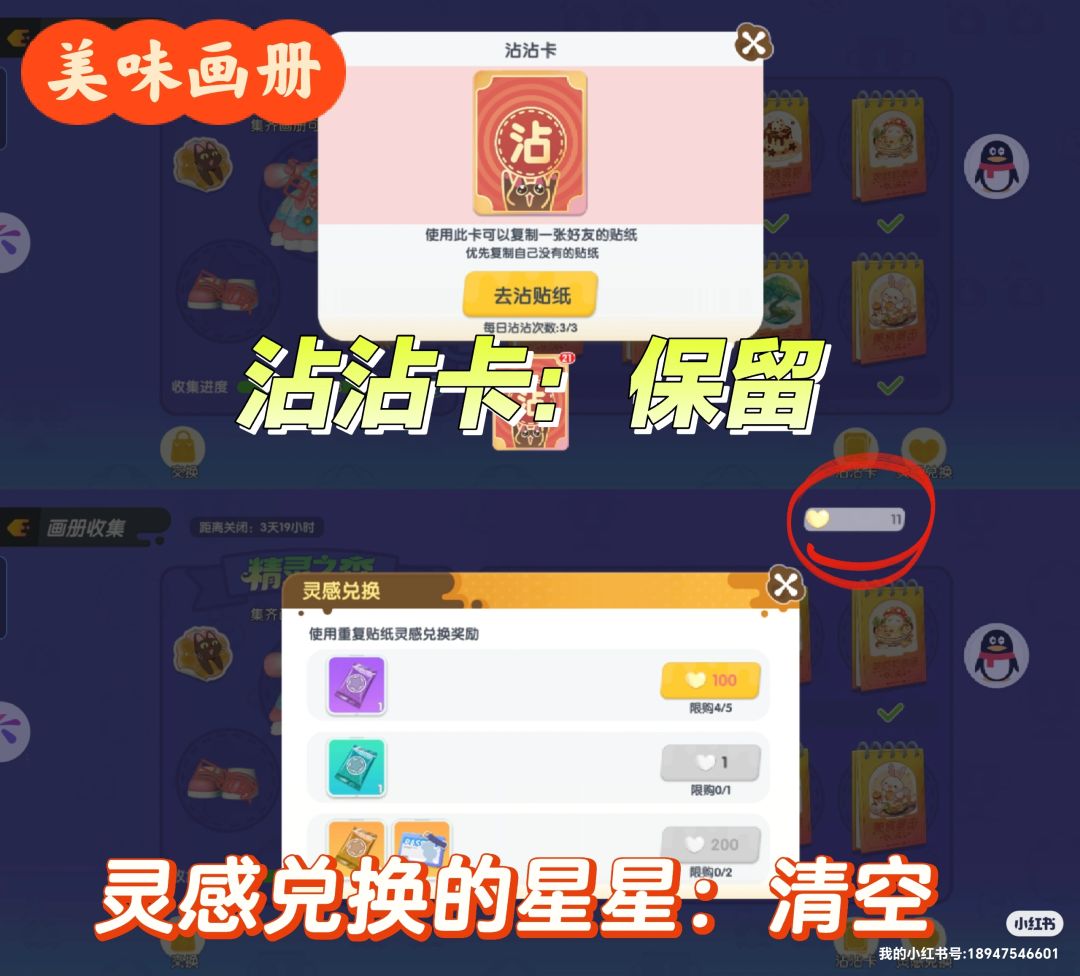 4.美味画册结束,沾沾卡保留,灵感兑换的星星清空【兑换】