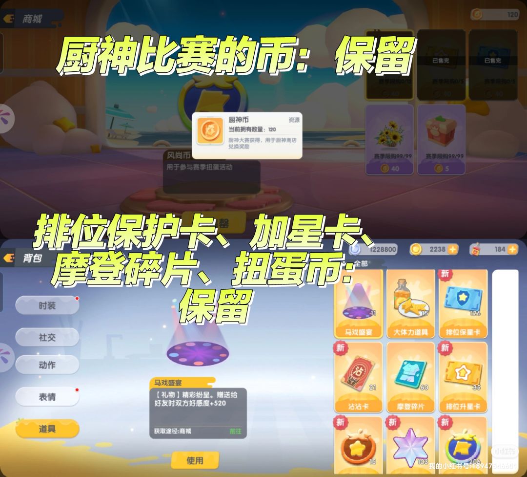 8.加星卡、保星卡、摩登碎片、扭蛋币:均保留。