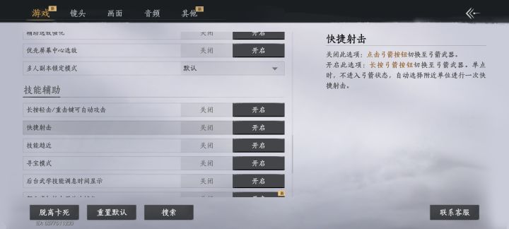 设置 → 游戏设置 → 技能辅助 → 开启「快捷射击」。