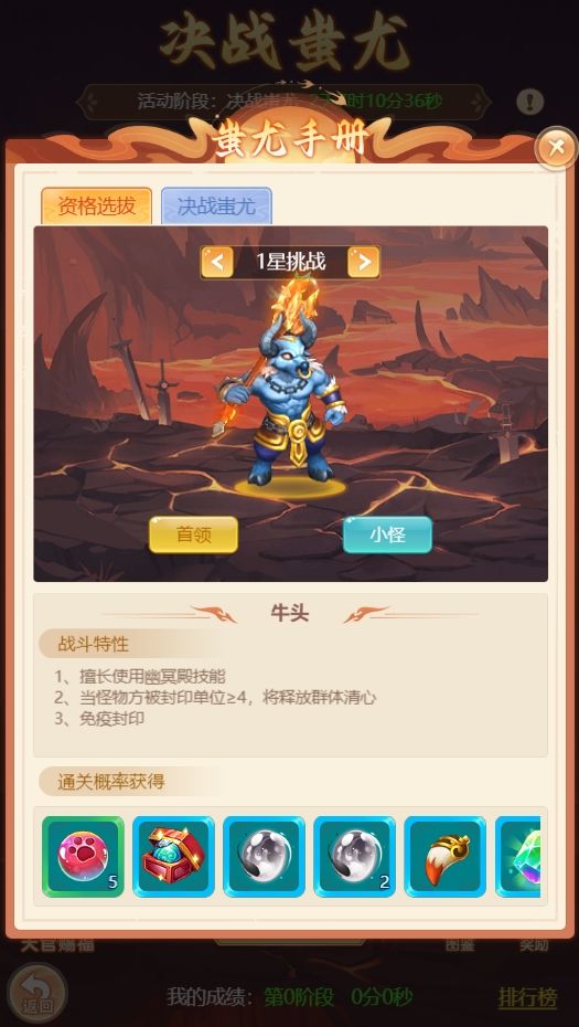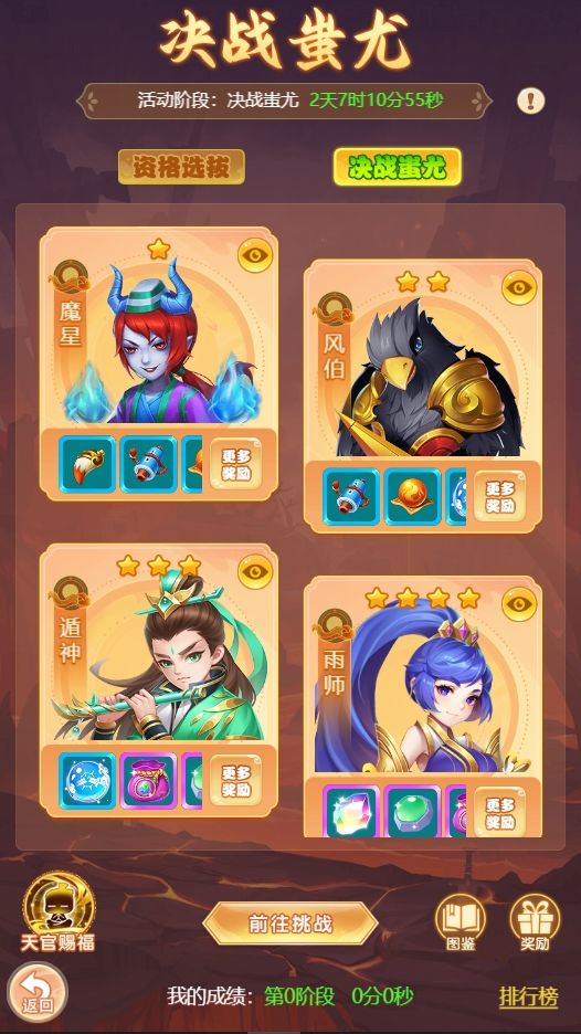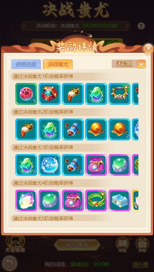 2.可在活动界面处查看各资格选拔关卡和决战蚩尤通关阶段的怪物图鉴和奖励详情
