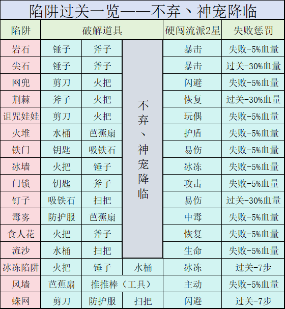 陷阱种类比较多,应用最多的是27关,曾经被饱受折磨。下图是所有陷阱及对应解决道具,持续更新,如有不准确联系我改正,大家一起完善。