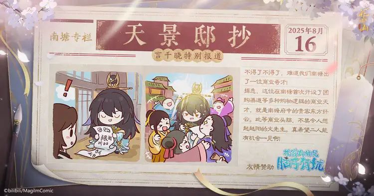 又逢言千晓笔墨干涸之际,随着东方纤云正式成为了花家的“杂役”,并活跃于南塘的各个街道,言千晓知道,全新的专栏题目来了,他无需再被与他有着“过命交情”的报社主编们四处追杀了。