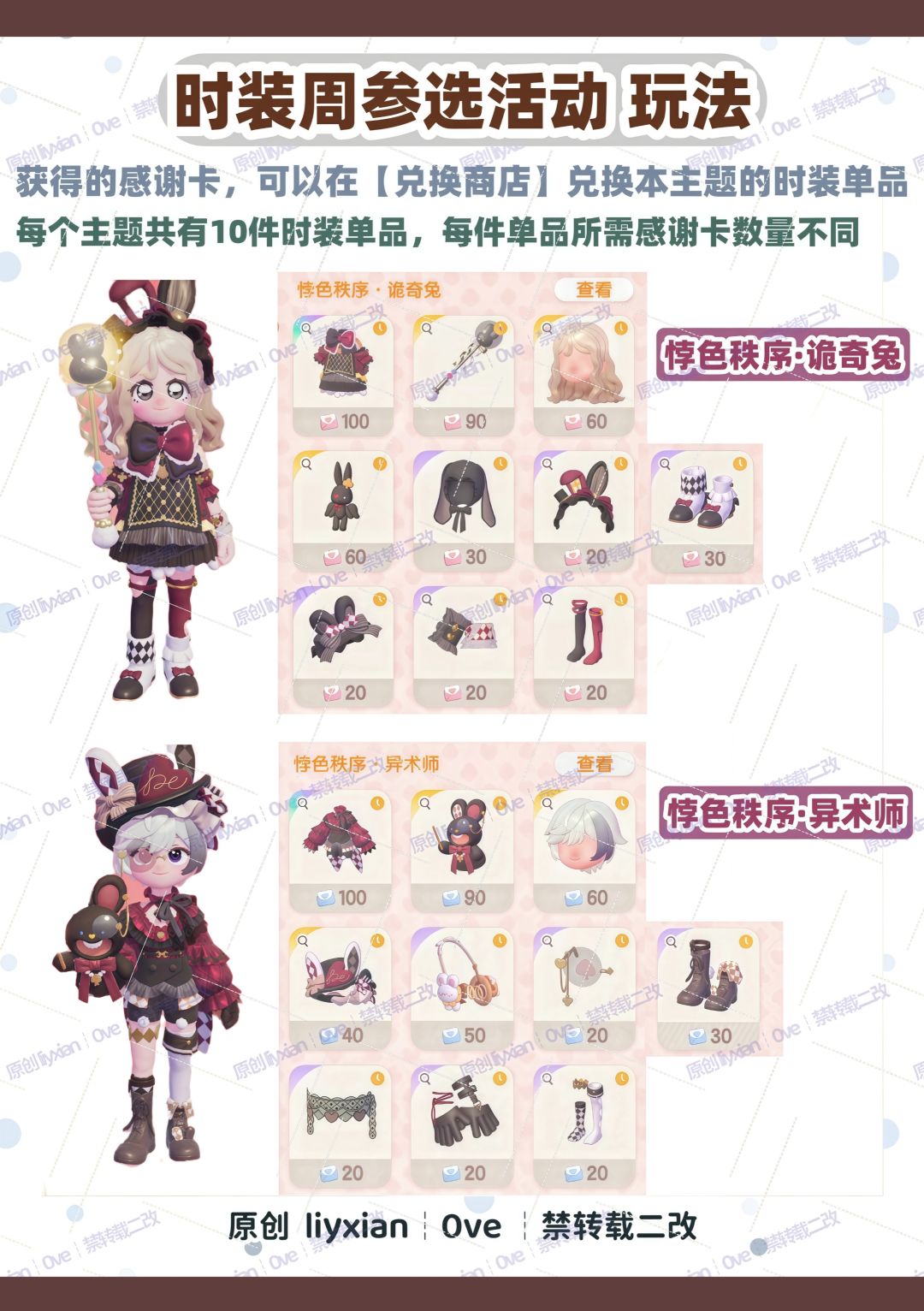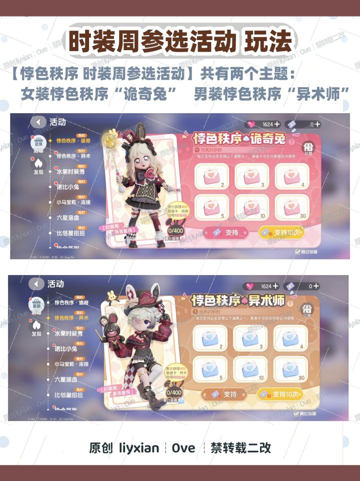 活动共有两个主题:女装悖色秩序“诡奇兔”、男装悖色秩序“异术师”。
