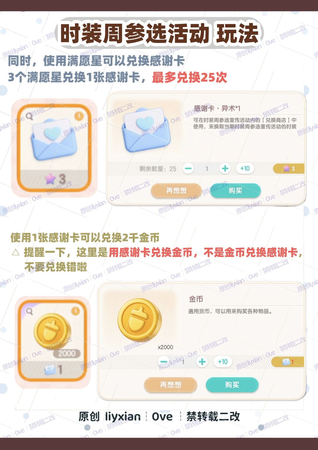 同时,使用满愿星可以兑换感谢卡,3个满愿星兑换1张感谢卡,最多兑换25张。