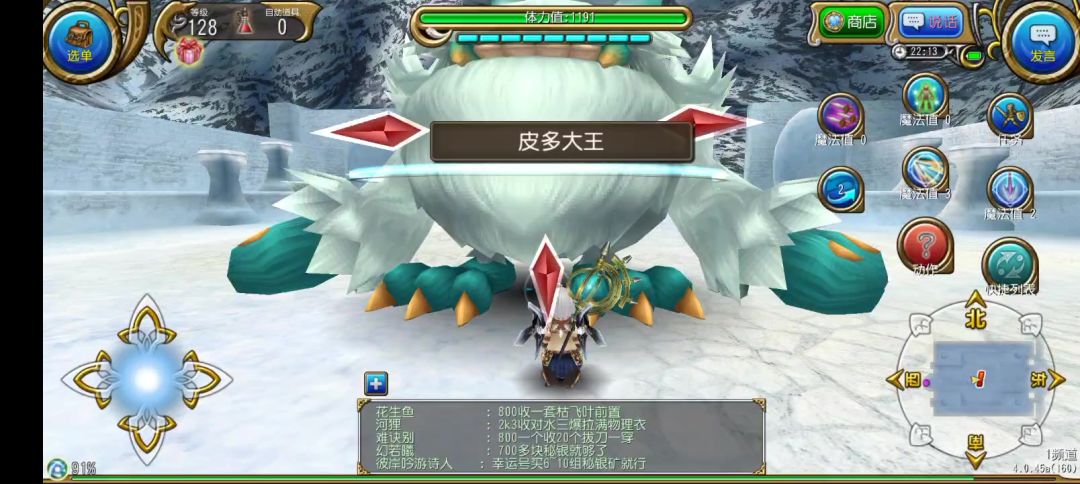 皮多大王,简称皮多,个人称呼其为山大王。近战噩梦级,远程过家家。小心它开局的扇形技能,越远范围越大。配合好大姐头的百级急救一扶就起,轻松到没边了,主打一个松弛感。(野王金拳角兽(个人称呼其为金角大王)在艾路菲山脉三区) (小声说到公屏有小剧场)