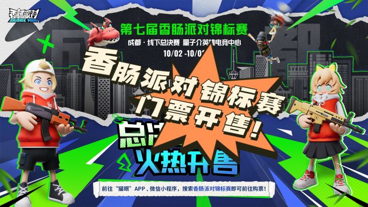香肠派对爱好者迎来重磅消息,第七届香肠派对锦标赛线下总决赛门票正式开售。此次赛事将于10月2日至10月3日在成都量子介英雄电竞中心开赛!