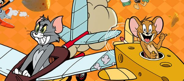 汤姆龇牙喊“飞不过去就把你扔去喂斯派克!” 杰瑞回怼“你先操心下自己会不会坠机成猫饼~”
