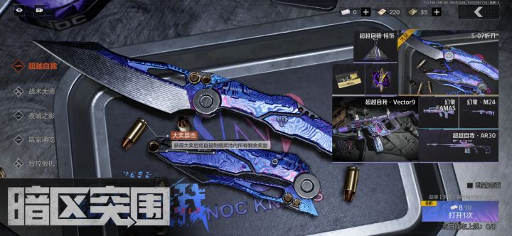 这期我们来聊一聊暗区突围最新上架的另一款刀皮军需突破自我。在我个人玩了一下这把刀后,以我个人的视角这把刀还说的过去,为什么这么说呢?首先,这把刀作为一把折刀在切刀和检视方面有稍微一点点的花里胡哨,没有像前面两款野战折刀一样干净利落。但是,这把折刀它的整体色调会比前两个野战折刀要丰富,虽然说整体多为蓝色,但在蓝色中还有一些淬火的存在。其次这一把折刀比较短小,所以在距离上也有差别。综合来讲如果比较喜欢短折刀的话可以买一手。