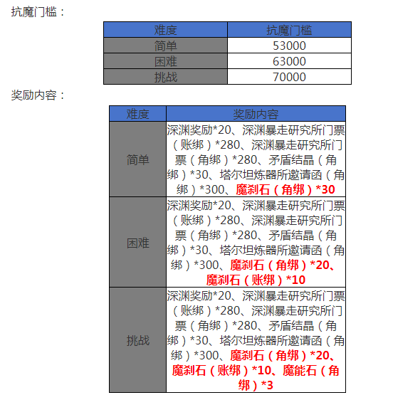 注:挑战模式获得的魔能石基本聊胜于无,30枚才能升级一件史诗融合装备,史诗级融合装备在安图恩团本也会获得,不影响玩家进度