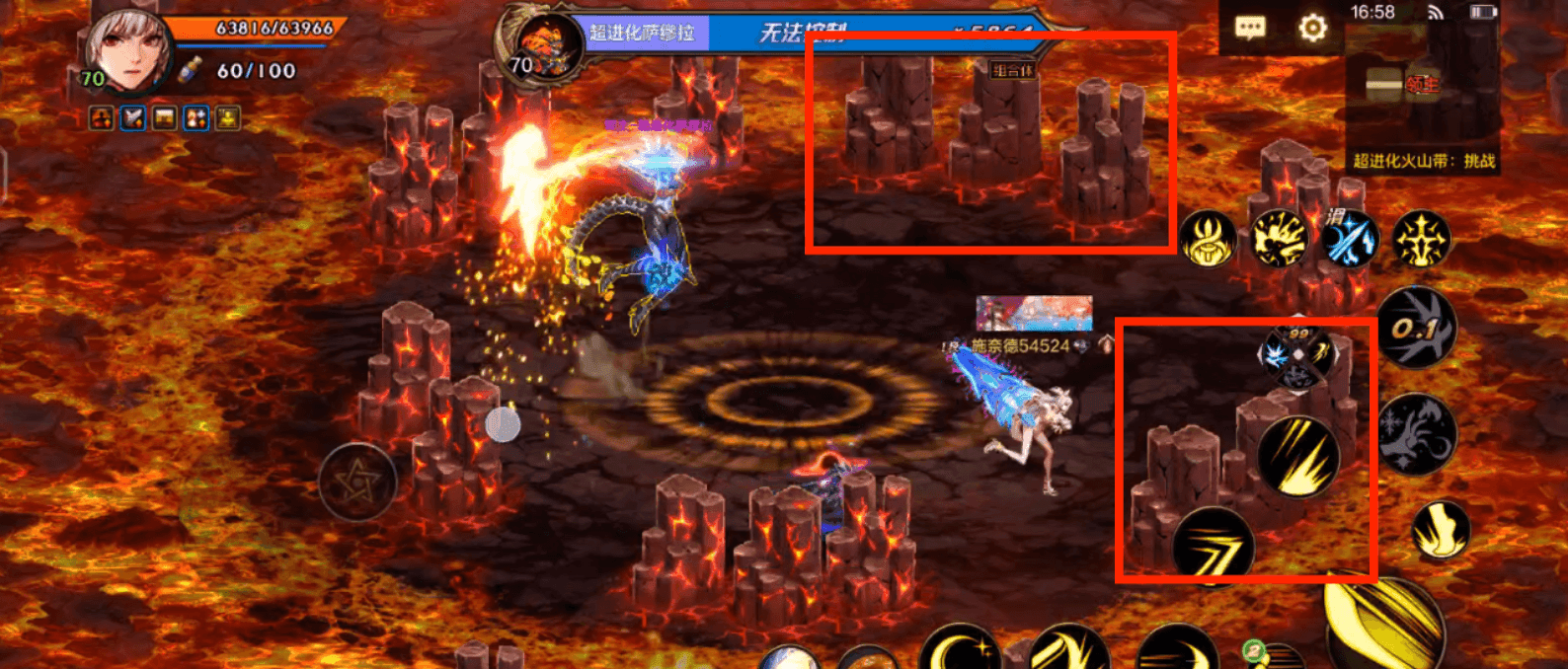 这个机制很多人一头雾水,不知道怎么破解,boss将玩家聚集到地图中间,并在地图外圈召唤大范围的岩浆,这个岩浆伤害非常高,然后boss还会对玩家造成一个持续吸引效果,同时也会召唤一圈石柱,这些石柱有两种,一种是纯棕色石柱,一种是有岩浆痕迹的石柱