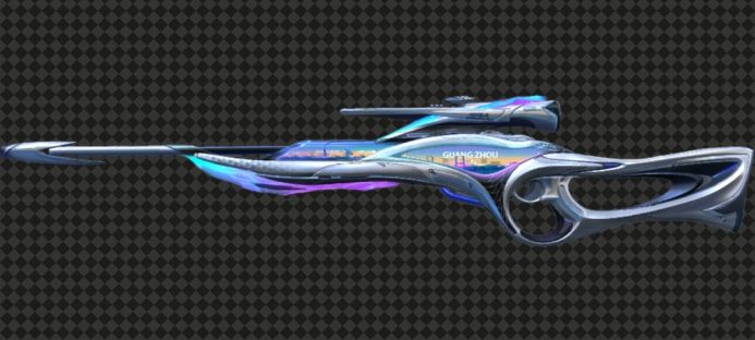 枪身以深蓝色为主基调,象征科技与深海,搭配银灰色金属质感框架,强化未来武器的冷峻感。枪身线条流畅,从枪口至枪托逐渐收窄,使枪械更加轻便,更符合对局作战理念。
