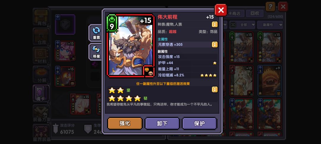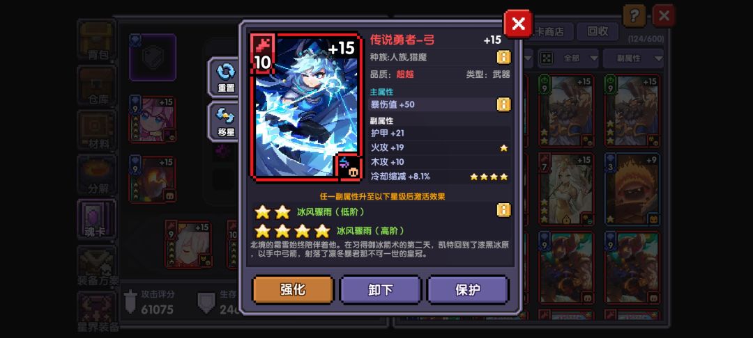 原来是武器一号带蛇,三号四星龙卡,饰品一号位带老虎,但是有人跟我讲这三张打桩没效果,我就换掉了