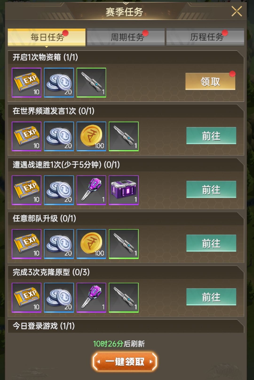 参与【遭遇战】提升杯数,即刻狂揽冲分基金豪礼!普通奖励即享海量金币,冲击高级奖励更能解锁稀有量子密钥与史诗/传说级部队补给!关键升级高级奖励同样零氪金,仅需钻石即可轻松获取!