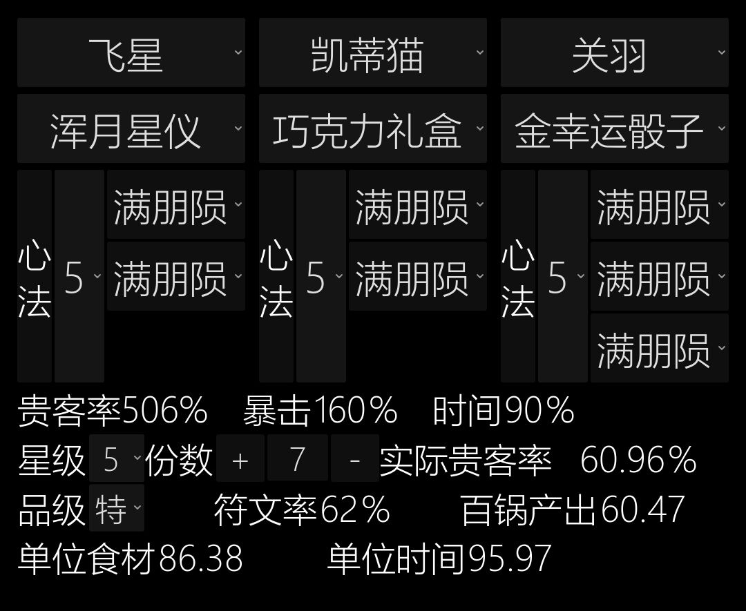 如果这样刷符文会溢出,蒸五火厨的心法盘都拉满了还剩300多蒸符文(当然也是因为我厨师少),一个5火厨也就才用70个金符文,这300多个用到明年都用不完。