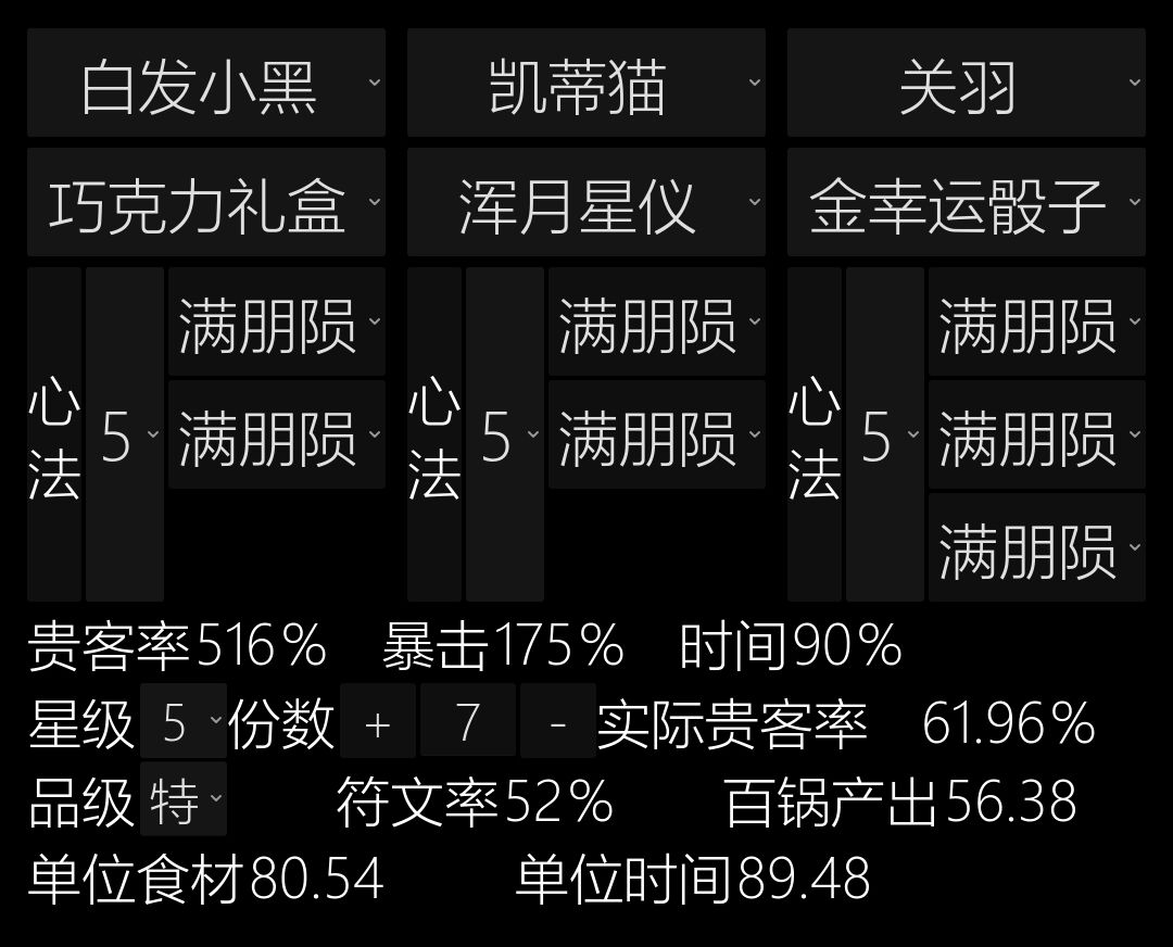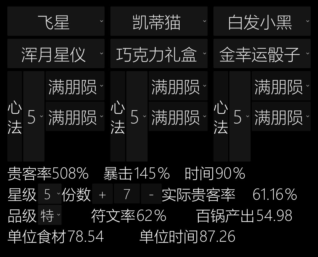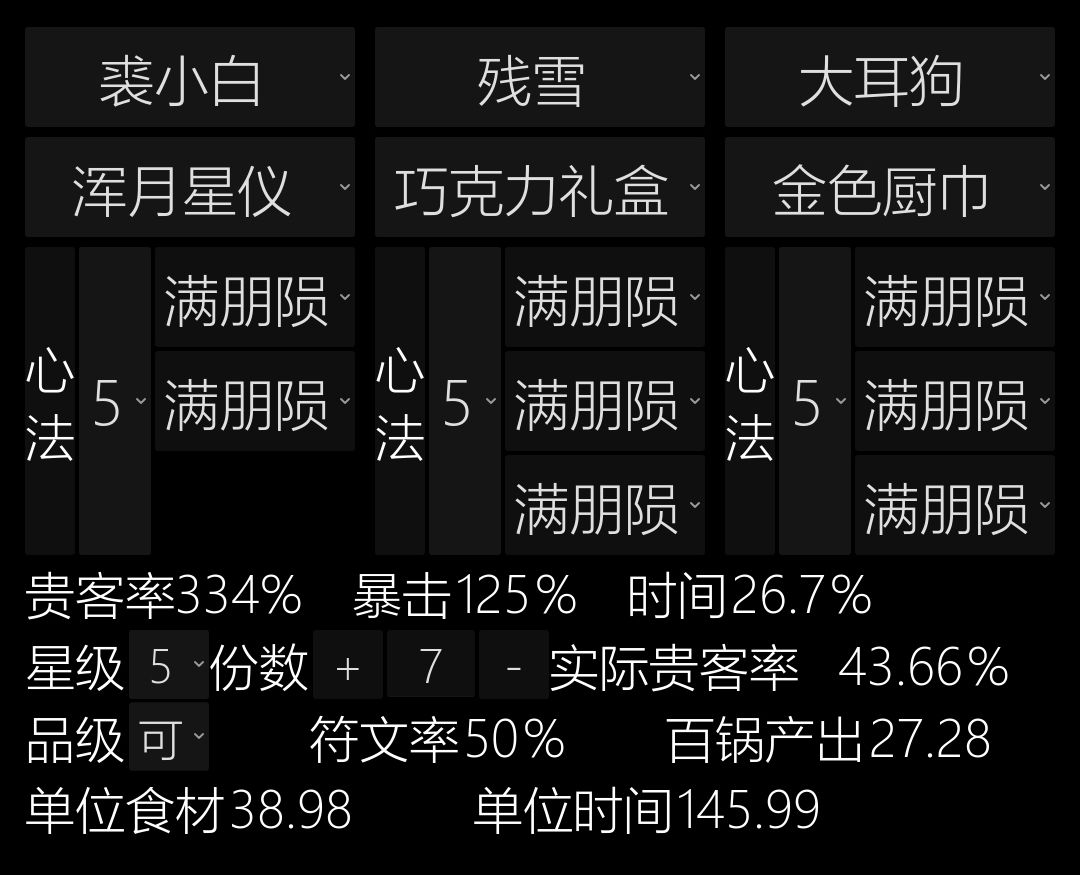 因此我就考虑到如果用裘小白+残雪+莫扎特虽然消耗两倍+的食材,但也能有两倍+的收益。