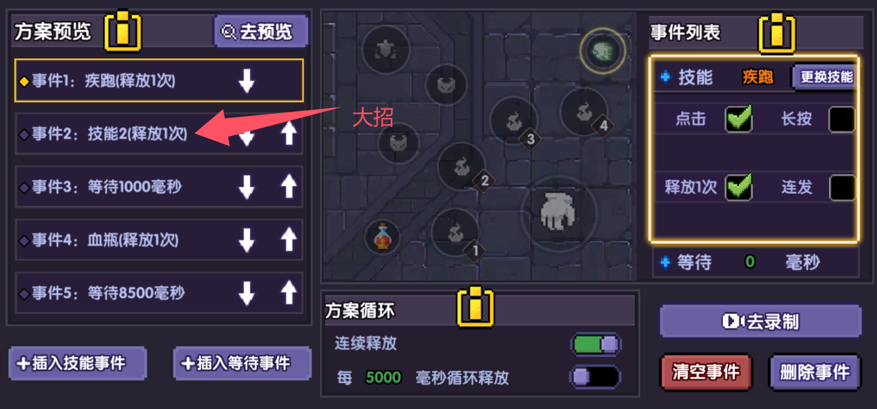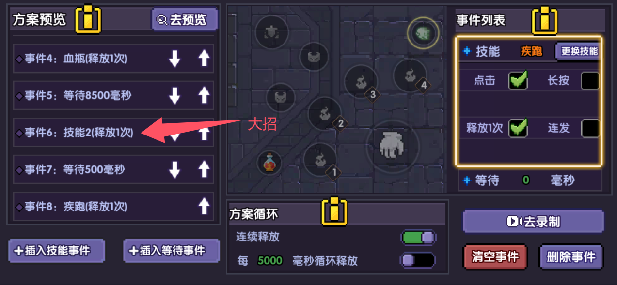 由于火游大招需要手动控制释放时间,所有不能用全自动宏。