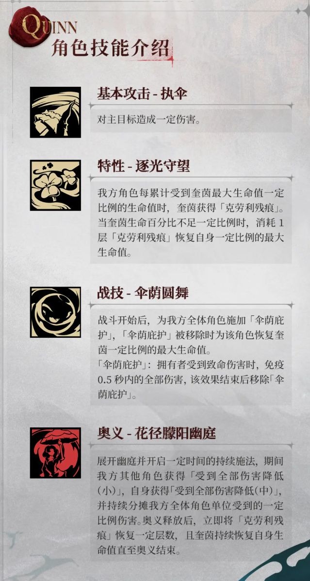 今天《银与绯》公布了新眷属的技能信息,在机制上会比较针对始祖苍,接下来给各位小伙伴们带来奎茵的适性简评,大家可以做个参考。
