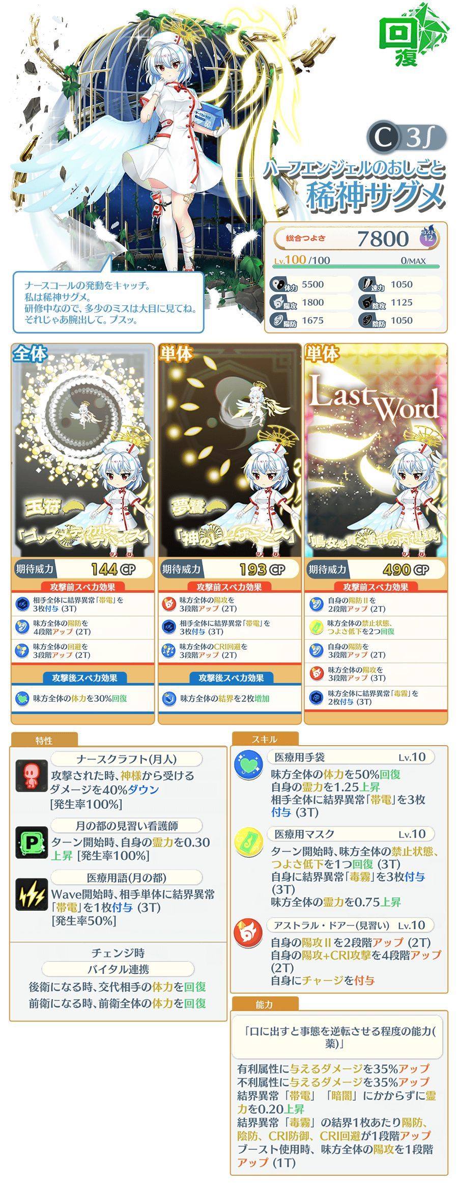 6段:妖怪、妖精、异变解决者、月之仇敌、毒、护士,