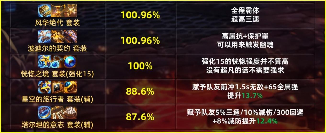 风华绝世全程霸体体验感最好,伤害略低一些。其他两套辅助首饰全属强预期收益最高,但稀释较大大。适合本身属强不高的队友。