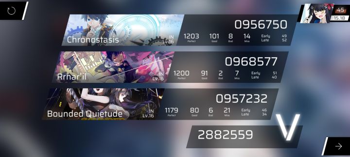 没想到时停竟然是三张谱里打得最拉的,爆了100g……我这准度真是没眼看啊www