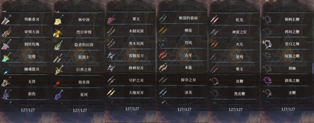 全武器图鉴:(后期做全收集成就的时候,可以去找放逐小镇古董商里面的收集图,对照全图鉴和全收集系列里面找你差的那个的出处,部分可以对照下怪物图鉴,定点杀某个怪物爆装备)