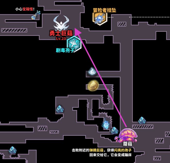 ,跳不过就后面拿了能力再回来跳, 再往上走会遇见NPC“蘑菇”: