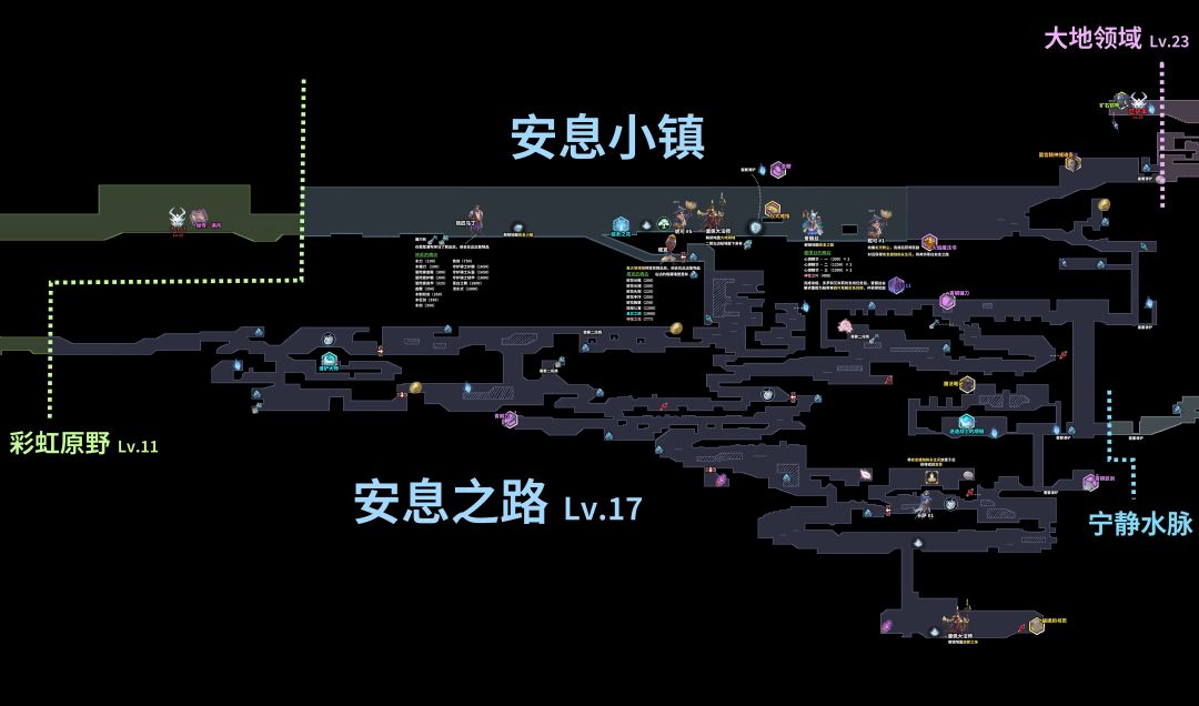 只能往彩虹原野的右边探索,“安息小镇”、“安息之路”,其实算是一个地方,还是先走“安息小镇”比较好,再从“安息小镇”到“安息之路”