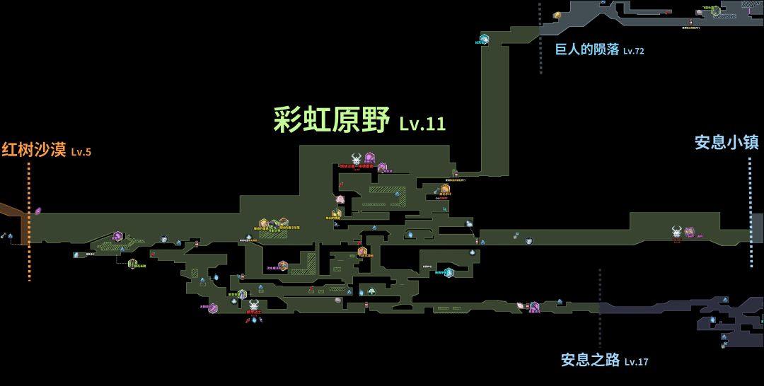 现阶段只能右上方探索,然后前往彩虹原野